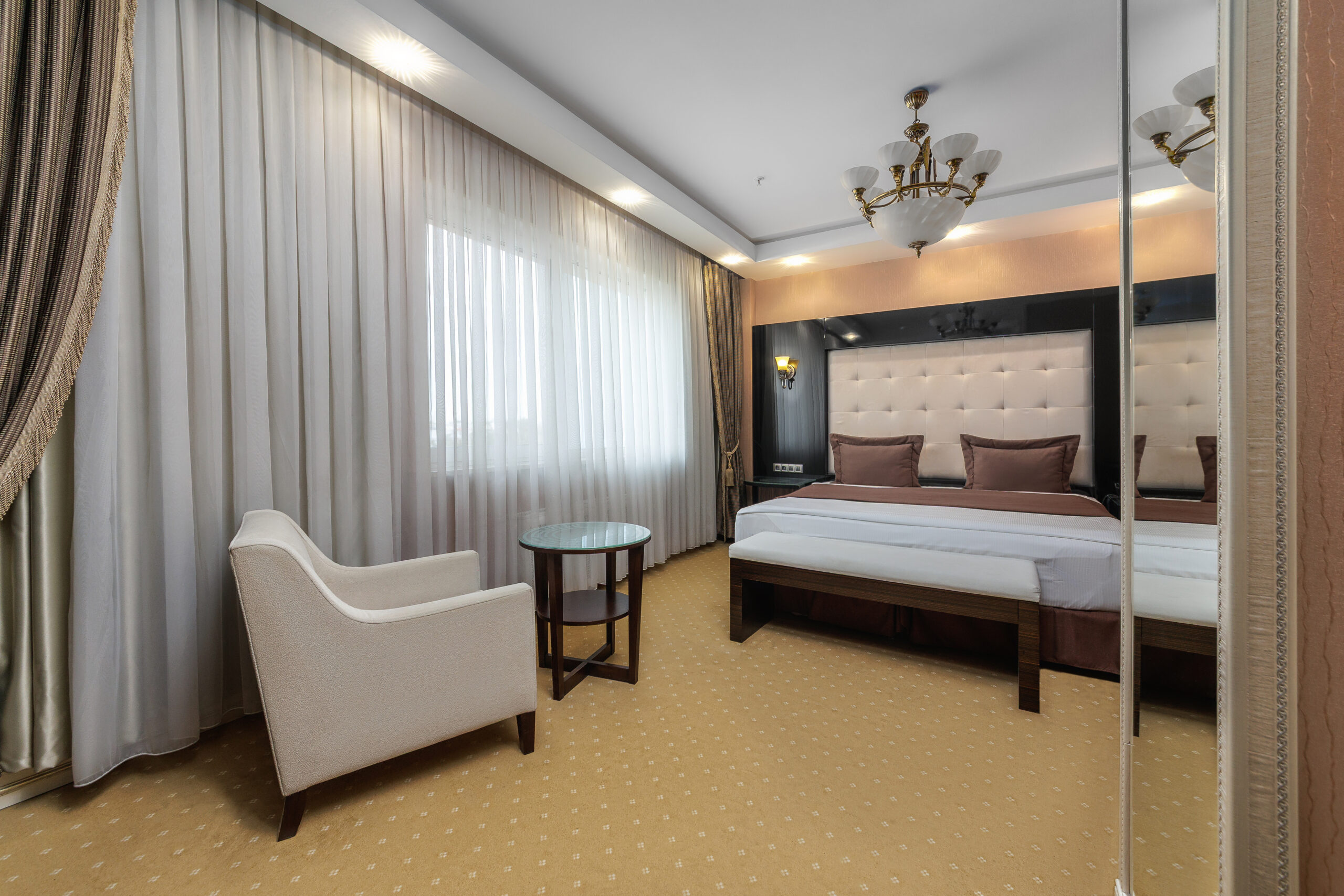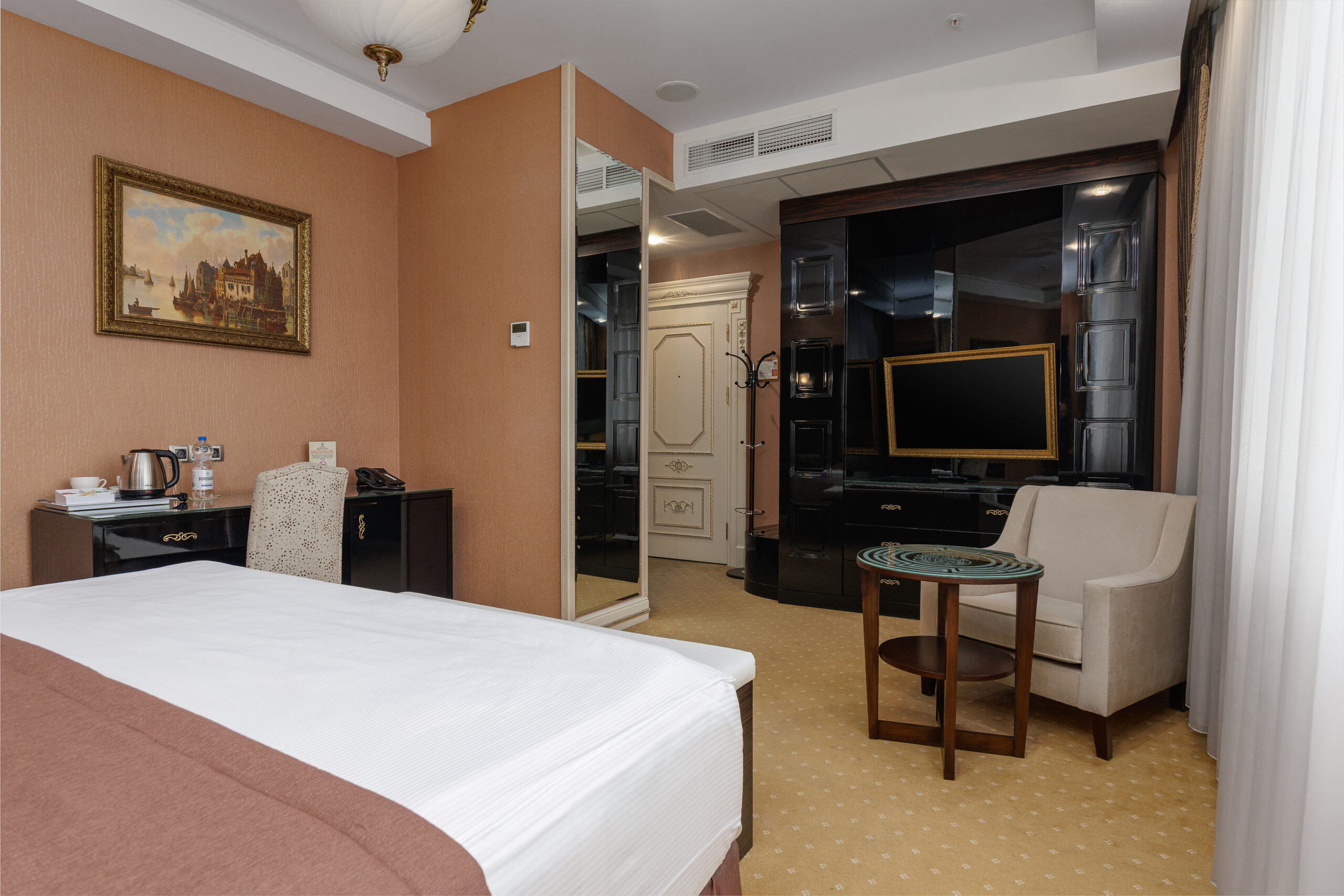 Уютные номера Бизнес категории располагают всем необходимым для комфортного отдыха и проживания в одном из красивейших и древнейших городов Беларуси. Эти номера для тех, кто ценит удобство и практичность, будь то деловая поездка или отдых выходного дня. Просторная кровать King Size с ортопедическим матрасом, комфортные подушки и белье, телевизор, электронный сейф для безопасного хранения ваших ценных вещей, минибар – все продумано и создано для того, чтобы вы почувствовали себя как дома.