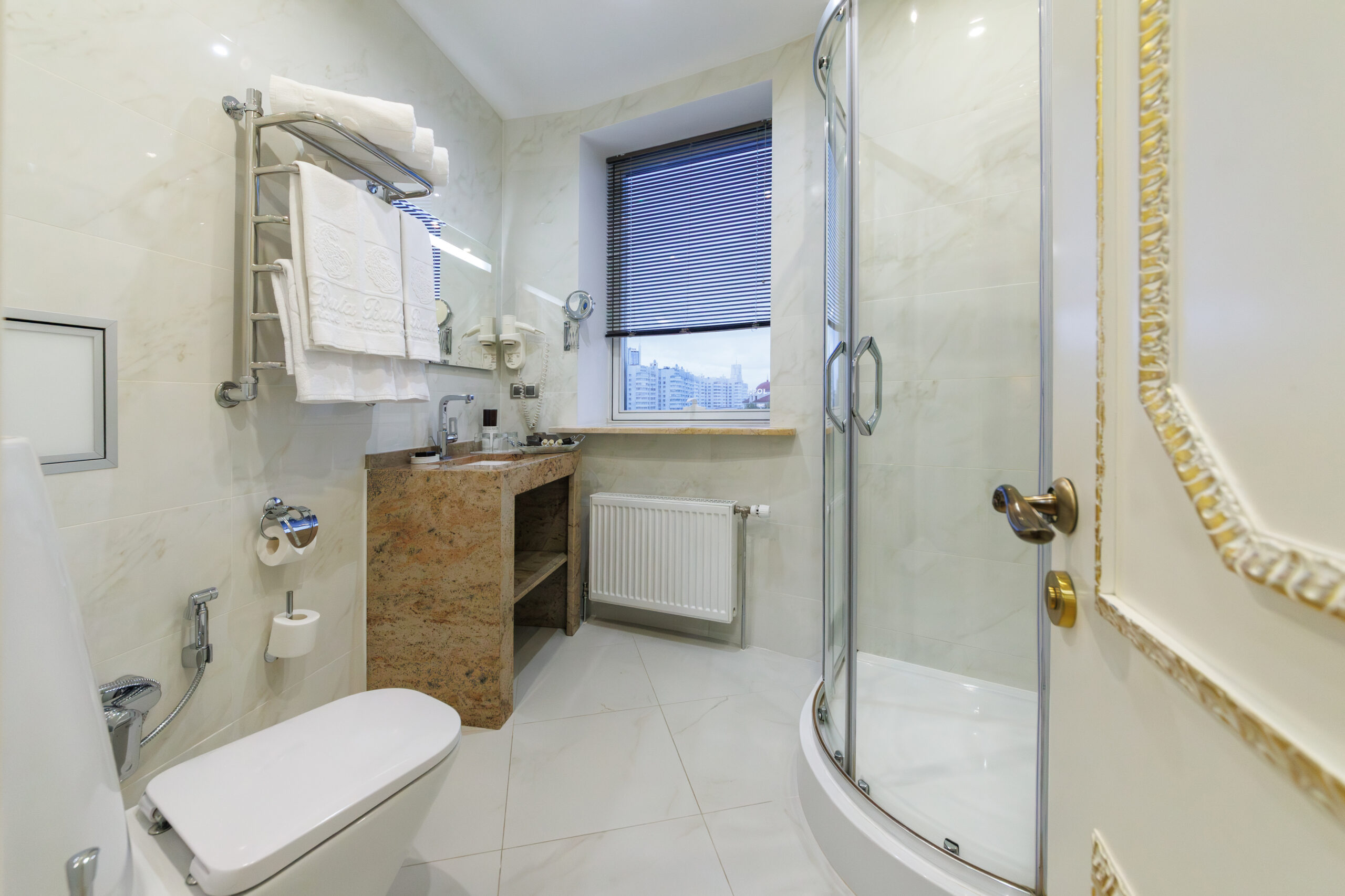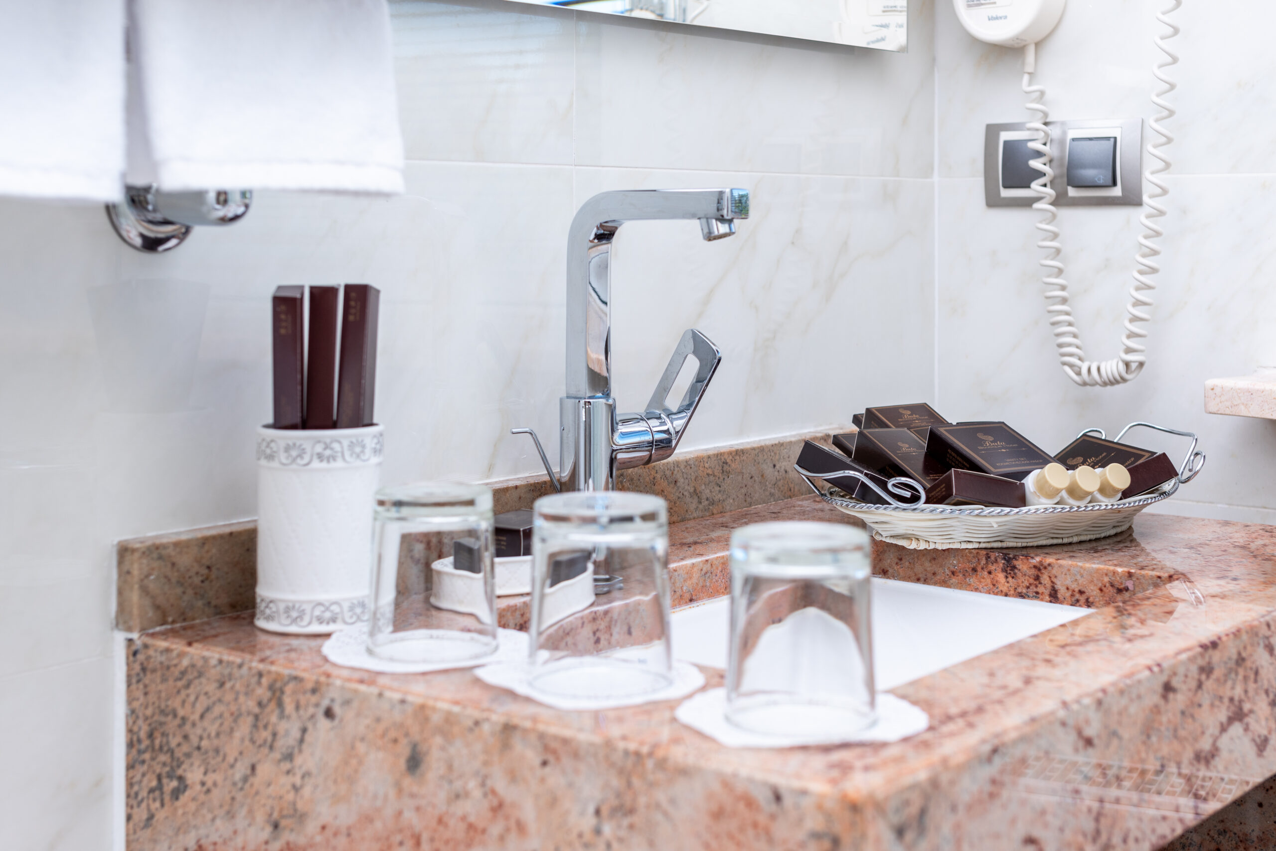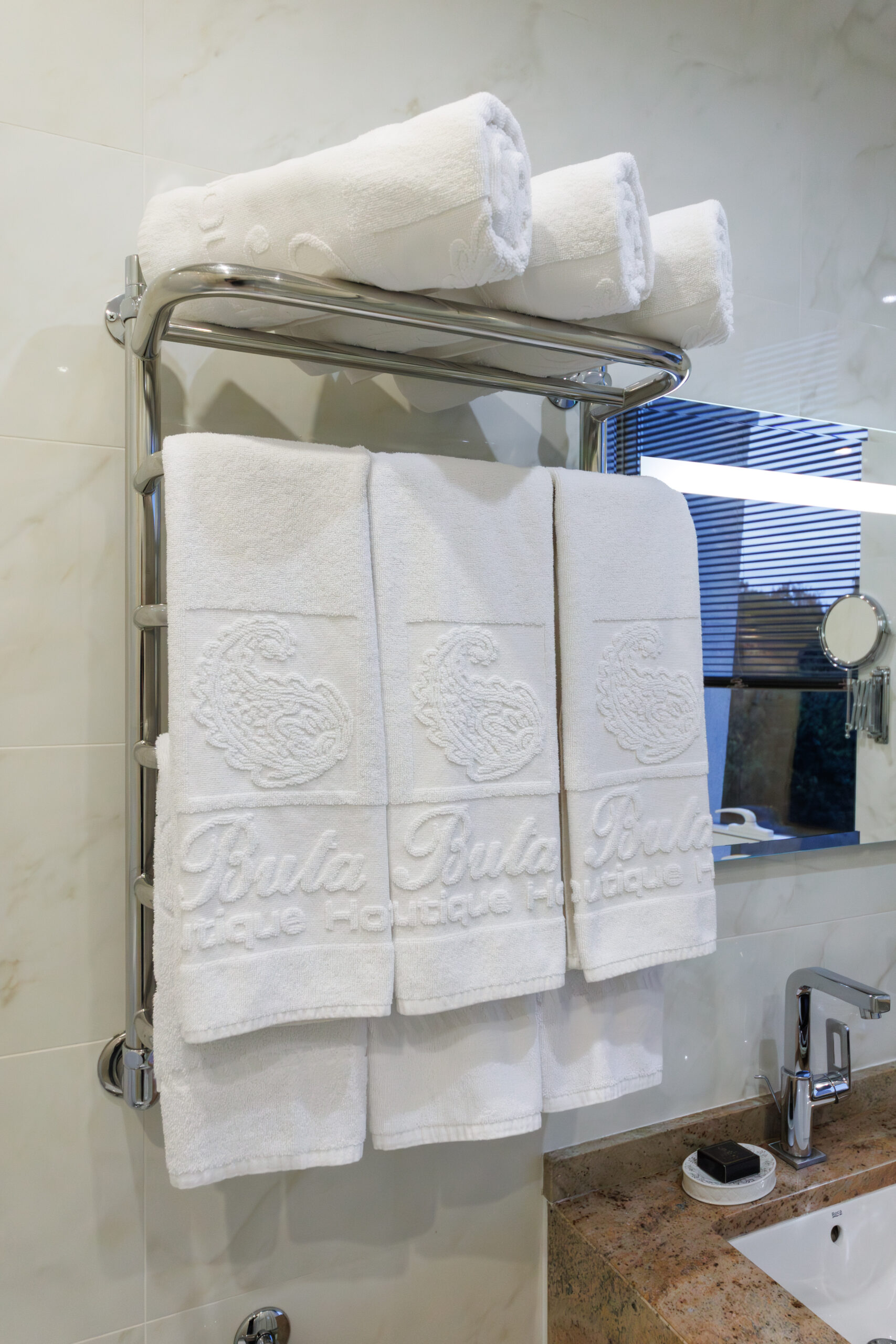 - Комплект полотенец, халат, тапочки